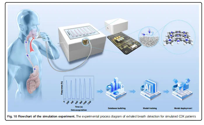 图10 模拟实验流程图。 模拟CDK患者呼出气体检测的实验过程示意图。