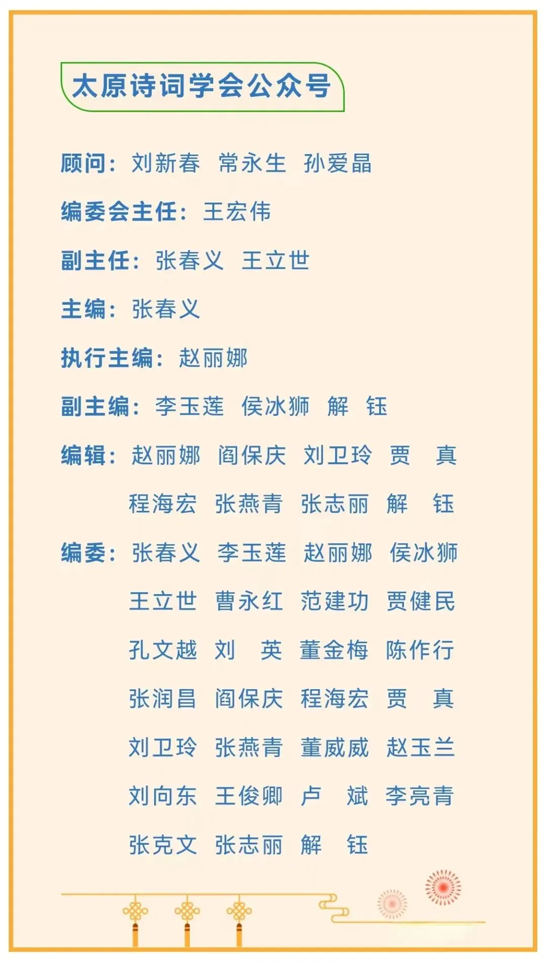 此次办公会议,既是一次总结过往、规划未来的工作部署会,也是一场墨香氤氲、温情满满的新春联谊会。春联传福寄初心,砥砺奋进启新程。太原诗词学会将以此次会议为契机,秉持对诗词文化的热爱与坚守,在新的一年里踔厉奋发、笃行不怠,让千年诗词文脉在龙城大地焕发更为璀璨的光彩,为建设文化强市贡献诗词力量。