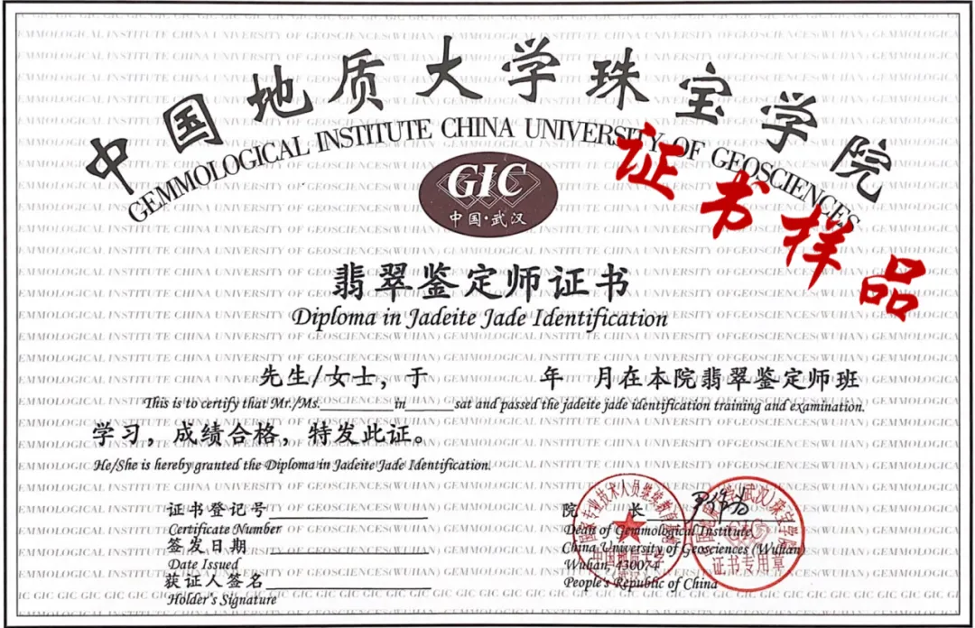 学习期满经考试合格者,能获得由中国地质大学(武汉)珠宝学院统一颁发的“GIC翡翠鉴定师证书”。