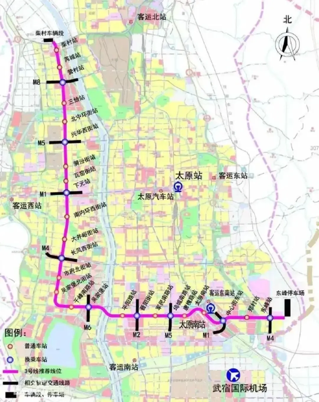 规划显示,3号线一期北起柴村,南至东峰,全长约31.5公里,像一个大写的“L”蜿蜒在汾河西岸。它贯穿金桥西街、和平北路、和平南路等交通干道,最终向东跨越汾河。