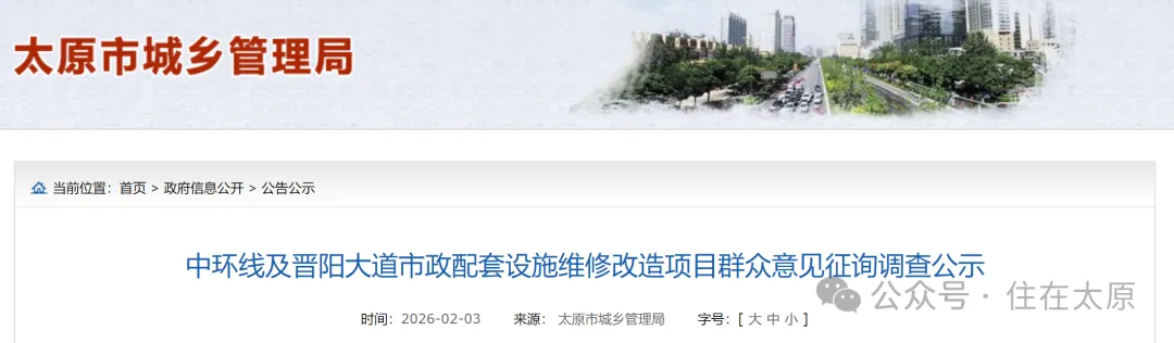 针对这些长期存在的痛点问题,太原市相关部门终于采取了实质性行动。近日,太原市城乡管理局正式发布了“中环线及晋阳大道市政配套设施维修改造项目群众意见征询调查公示”和“中环线地下管网更新改造项目群众意见征询调查公示”。这两个公示的发布标志着太原中环线和晋阳大道即将迎来全面改造。
