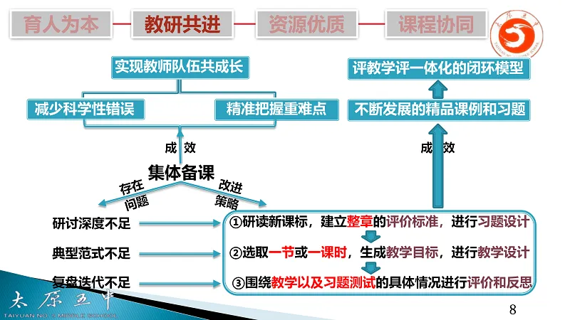 化学学科教研员齐红涛老师以“育人为本,教研共进,资源优质,课程协同”为目标,强调集体备课可减少科学性错误,能够精准把握重难点。学科组直面思政教育融入不足、教学方法创新不够、资源共享缺乏时效性与系统性等问题,深耕新课标,建立整章评价标准,通过典型课例范式生成、教学复盘迭代,推进教学评一体化,实现教学资源高效共享与校本课程同国家课程协同发展。