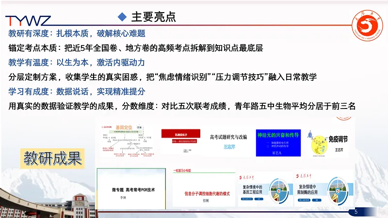 语文学科教研员宋为烜老师以“语言运用,文字兼美”为核心,聚焦教案完整性、板书设计、教考衔接与核心素养落实,通过赋分激能、默写零容忍等评价方式提质。学科组发展秉持“四阶提升,特色发展”路径,以“练就五中体,言传身教,以赛促练”的坚持,久久为功育新人。