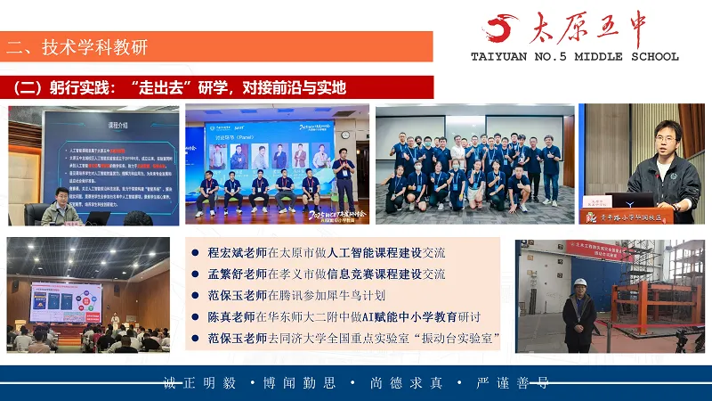 技术学科教研员陈真老师秉持“技意启迪,智创未来”理念,兼顾国家基础课程与拓展类课程,聚焦科技创新、编程思维、技术艺术与硬件实践,开设信息学奥赛、网络安全竞赛、AI大模型等特色课程。实行“小教研固本强基、大教研赋能提质”模式,搭建三维平台助推青年教师成长,构建跨区域教研共同体实现智慧众筹。
