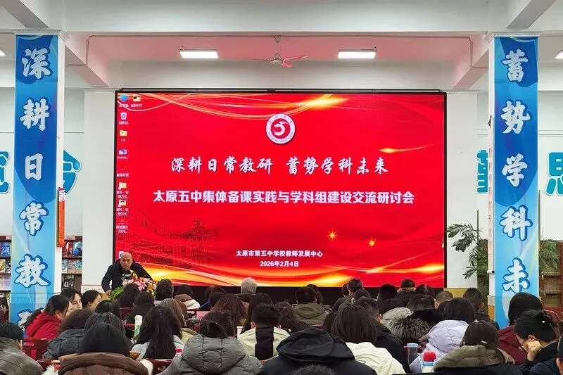 为总结教学研究成果、分享教学实践经验、谋划未来发展路径,2026年2月4日,太原五中教师发展中心组织召开以“深耕日常教研,蓄势学科未来”为主题的集体备课与学科组建设交流研讨会。会议汇集全体高中各学科教研员与备课组长,并特邀部分正高级教师参与评审。校党委书记雷晟、纪检书记王蓉、副校长刘晓瑜、副校长张毅强出席会议,与大家共同探讨集体备课实践,展望学科建设前景。