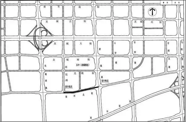 北起荣军北街、南至龙城北街(长约726米),用地约2.1公顷;规划红线宽30米:中间14.5米机动车道,两侧各2米绿化分隔带,2.5米非机动车道,3.25米人行道(含树穴带)。