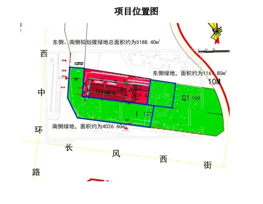 位于西中环以东、长风西街以北,用地约0.52公顷;万柏林区地块,用地性质为公园绿地。