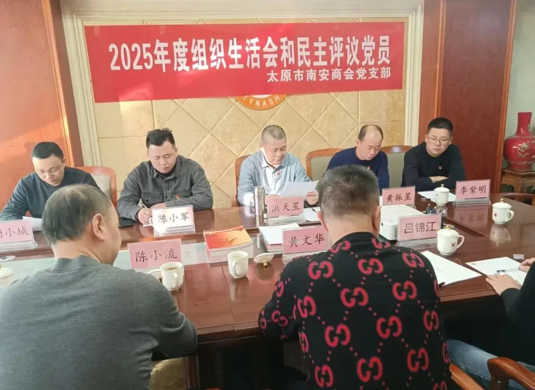 遵照太原市工商联行业党委《关于开好2025年度市工商联行业党委所属党支部组织生活会和开展民主评议党员的通知》工作要求,我会党支部于2026年2月9日下午召开2025年度组织生活会和民主评议党员会议。党支部书记洪天星主持会议,党员李紫明、黄振星、陈小军参加会议,流动党员谢小城、黄文华、陈小流、吕锦江及入党积极分子陈建新列席会议。会议组织全体党员深入学习习近平新时代中国特色社会主义思想和党的二十届四中全会精神,深入学习领会习近平总书记关于党的建设的重要思想。为开好组织生活会、做好民主评议党员工作打牢思想基础。