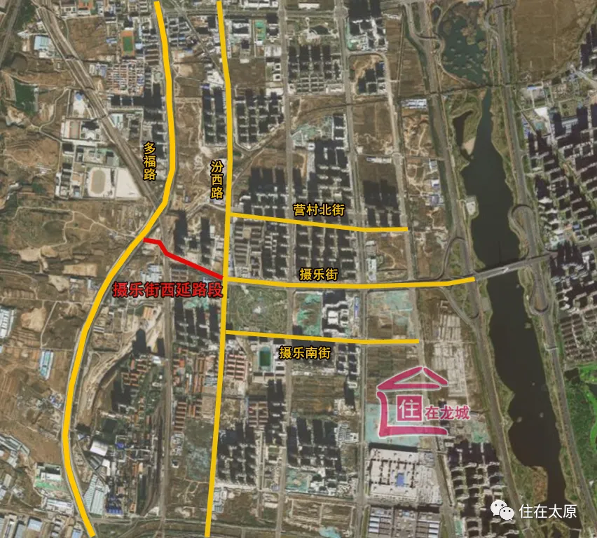 摄乐北街西延工程西起多福路,东至汾西路,长约 480米,规划红线宽 40米,为城市次干路,用地面积约1.7公顷。