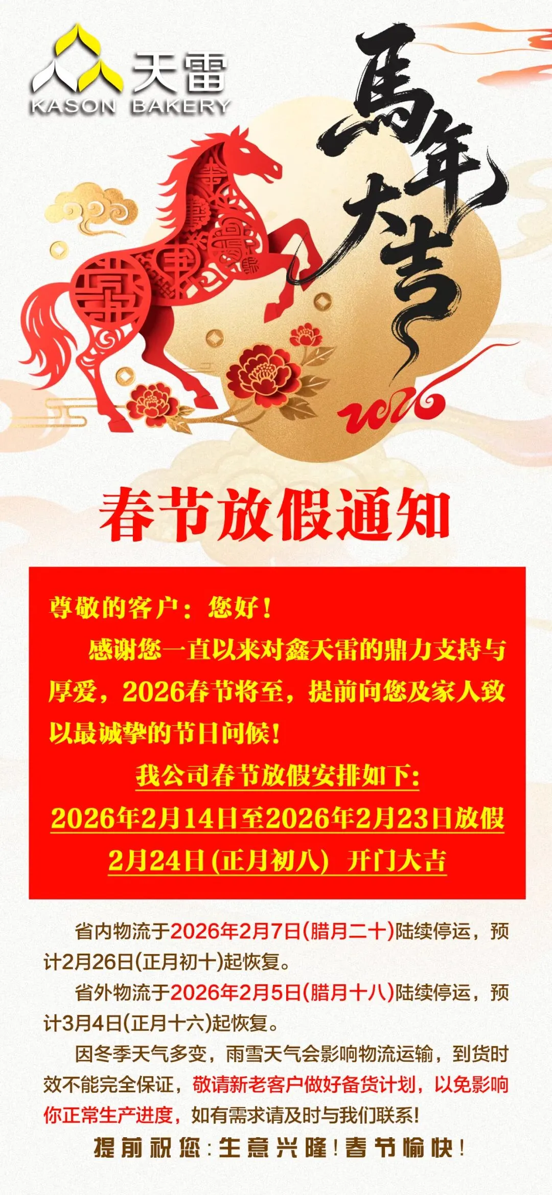 太原市鑫天雷食品商贸有限公司马年春节【放假通知】敬请知悉,提前给您拜年啦!!!