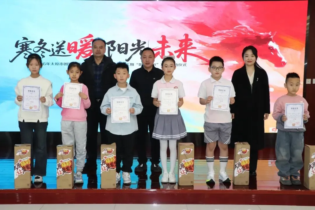 活动现场,由太原市慈善总会、太原市平阳商会、太原市关爱下一代志愿者协会共同支持,为全市散居孤儿和事实无人抚养儿童及留守儿童发放了2026年“阳光小包”慰问包,包含“暖衣包”“米油包”“书香包”“零食包”等四类物资,切实将党和政府及社会的温暖送达儿童手中。