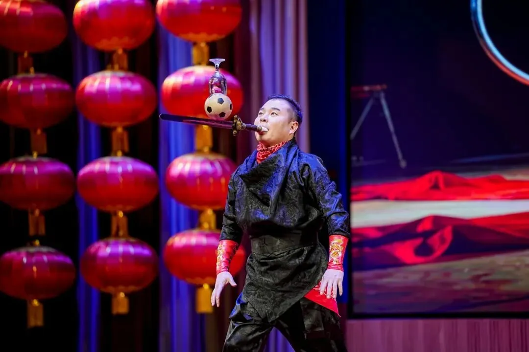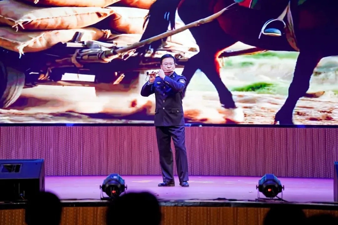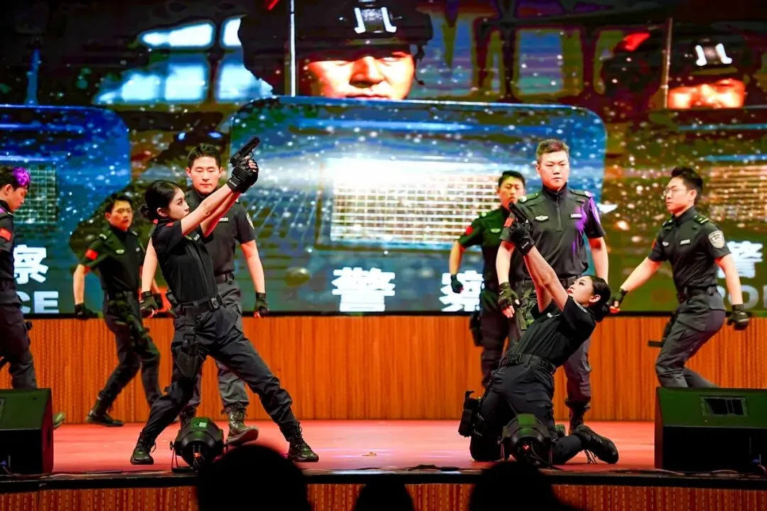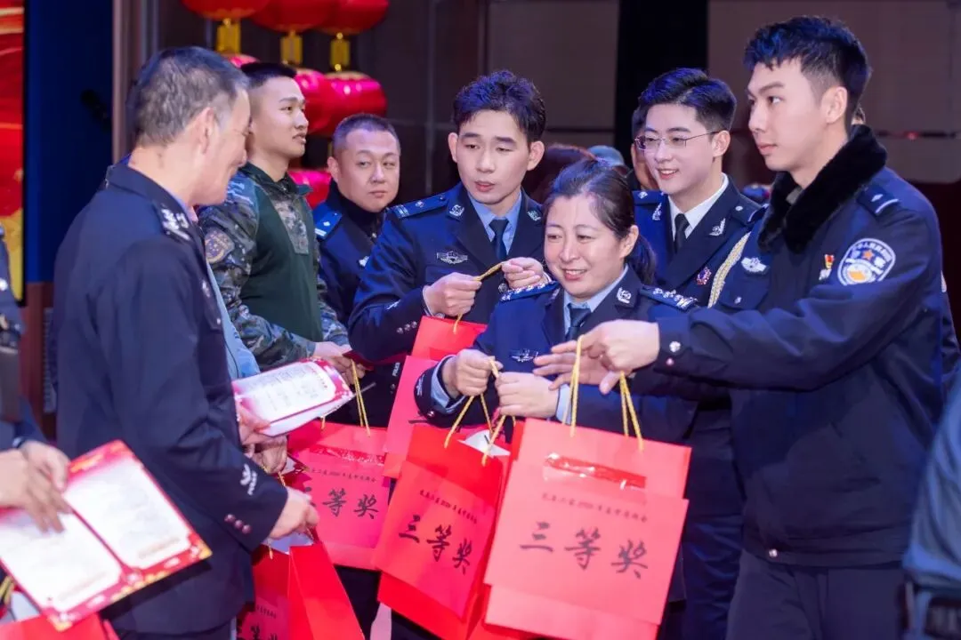 歌曲联唱《经典歌曲流行风》重温岁月经典,杂技《刀尖筑梦》带来震撼视觉体验,舞蹈《铸魂砺剑》尽显警营风骨,彰显藏蓝卫士的忠诚与担当;器乐联奏旋律悠扬,舞蹈《青花瓷》温婉雅致,勾勒出诗意江南;武警官兵带来的《鼓韵·旗迹》气势恢宏,尽显军人英姿;群口快板《藏蓝担当贺岁月赞》礼赞新时代警魂,魔术、戏曲联唱等节目精彩纷呈,为现场增添无限欢乐。