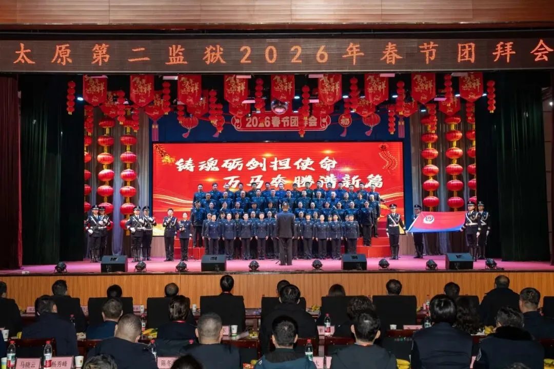 金蹄踏春启新岁,藏蓝同心贺华章。2月5日下午,山西省太原第二监狱2026年新春团拜会在欢乐祥和的氛围中隆重举行。监狱领导、民警职工及家属、驻监检察官、武警官兵与各界嘉宾欢聚一堂,共迎马年新春。