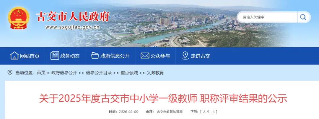 经古交市中小学一级教师职称评审委员会2026年2月9日会议评审,通过张玉等52名中小学一级教师职称。为保证评审工作的公开、公平、公正,现将本次评审通过的52名人员名单公示,欢迎本人所在单位及有关部门对此结果进行监督。如有意见,请在公示之日起五个工作日内反映情况。反映情况须客观真实,以单位名义反映情况的材料需加盖单位公章;以个人名义反映情况的材料应署真实姓名、工作单位和联系方式;以匿名形式反映情况和问题的不予受理。公示期结束后将不再受理相关问题反映。