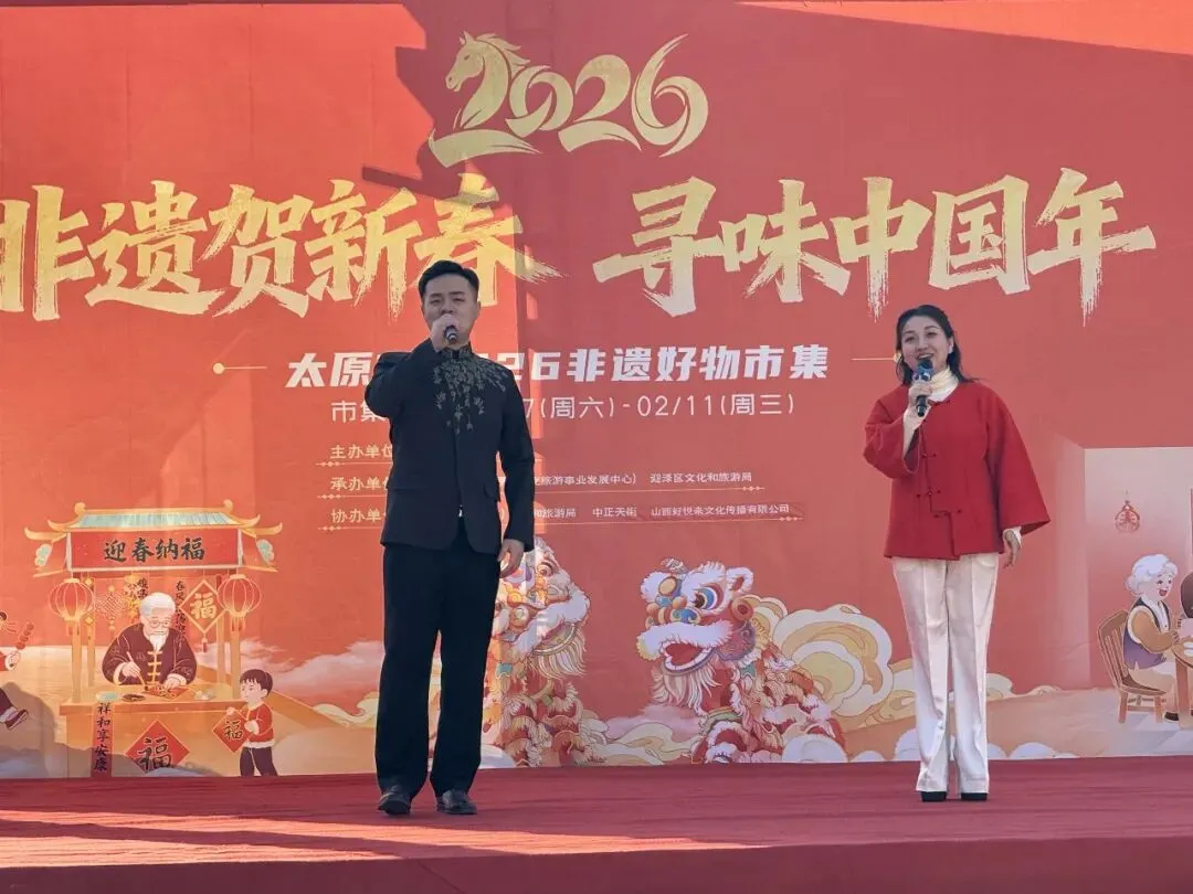 2月7日,“非遗贺新春•寻味中国年”太原市2026非遗好物市集在中正天街隆重启幕。这场由太原市文化和旅游局主办,太原市文化馆(太原市文化旅游事业发展中心)、迎泽区文旅局承办,各县(市、区)文化和旅游局、文化馆、中正天街、山西好悦来文化传播有限公司协办的的非遗盛会,以“展演+展销+互动”的多元形式,为太原市民送上了一场兼具文化厚度与年俗温度的新春大礼。