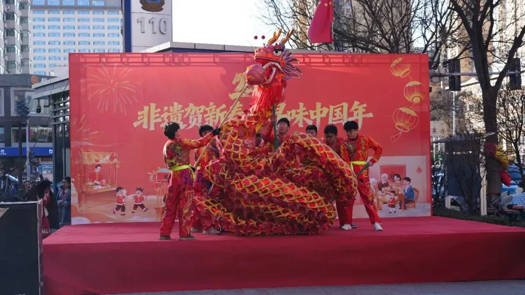 开幕式上,5大非遗展演轮番登场、精彩纷呈。山西太重鼓乐艺术团演绎的《金马吉鼓》锣鼓喧天,拉开活动序幕;传统喜娘礼仪《明制婚礼》,重现千年婚俗雅韵;非遗传承人带来的傅山拳法剑法,刚劲舒展间尽显武学精髓;歌曲《春风十万里》,唤起老太原的春节记忆;西华门舞狮团队的《龙舞中华》,以腾挪跳跃的灵动身姿,为活动画上吉祥句点,现场掌声此起彼伏。