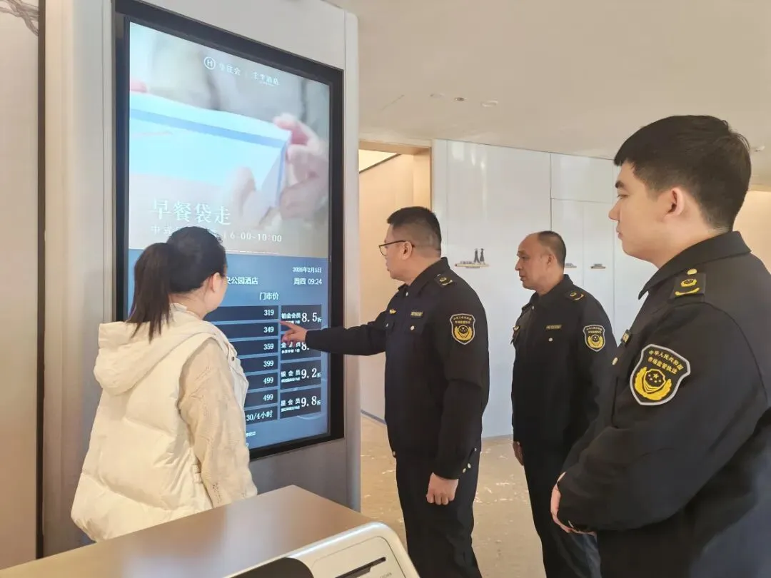 2月5日,市局价格督导检查组深入小店区、晋源区,先后前往盒马鲜生超市、全季酒店(晋阳湖店)、山西会馆(体育路店)等经营场所开展实地督导检查。在盒马鲜生超市,执法人员重点查看了粮油肉蛋、蔬菜水果、日用百货等节日热销民生商品的明码标价落实情况,核查价签是否在醒目位置、标价内容是否完整规范,严厉排查促销活动中是否存在虚假折价、虚构原价等价格欺诈行为。在全季酒店,执法人员重点检查了住宿价格的明码标价执行情况,核查住宿是否存在另行收费项目,是否存在不履行价格承诺等行为。在山西会馆,执法人员重点检查菜单明码标价合规性,了解“年夜饭”预定收费标准,核查是否存在收取未予标明的费用等违规行为。