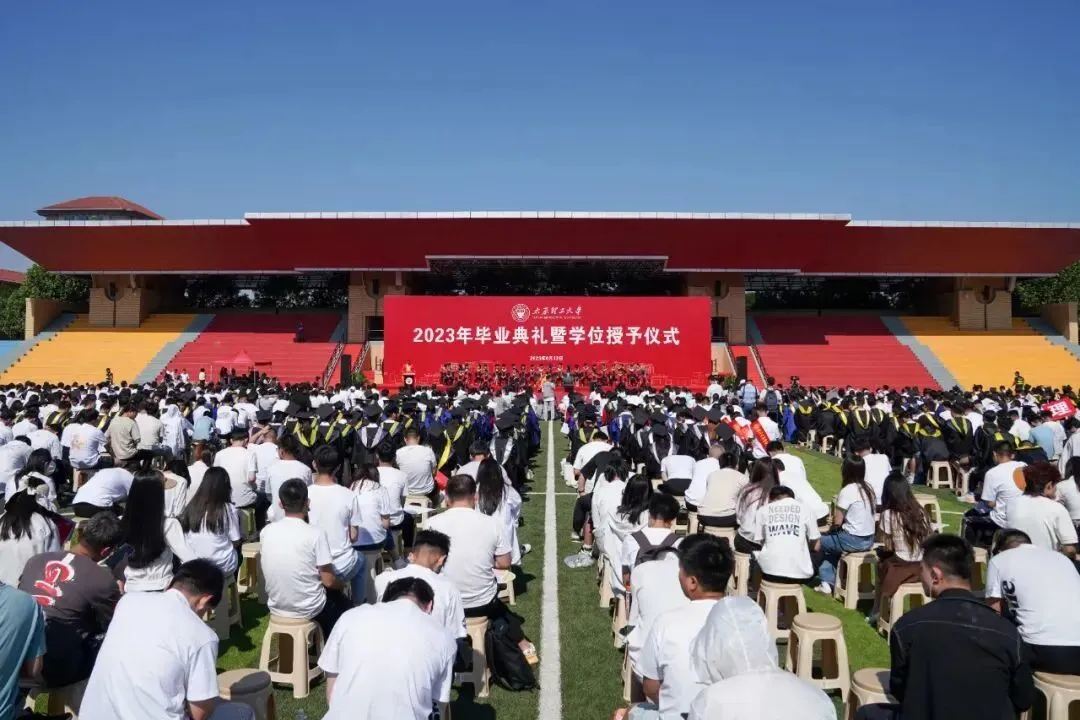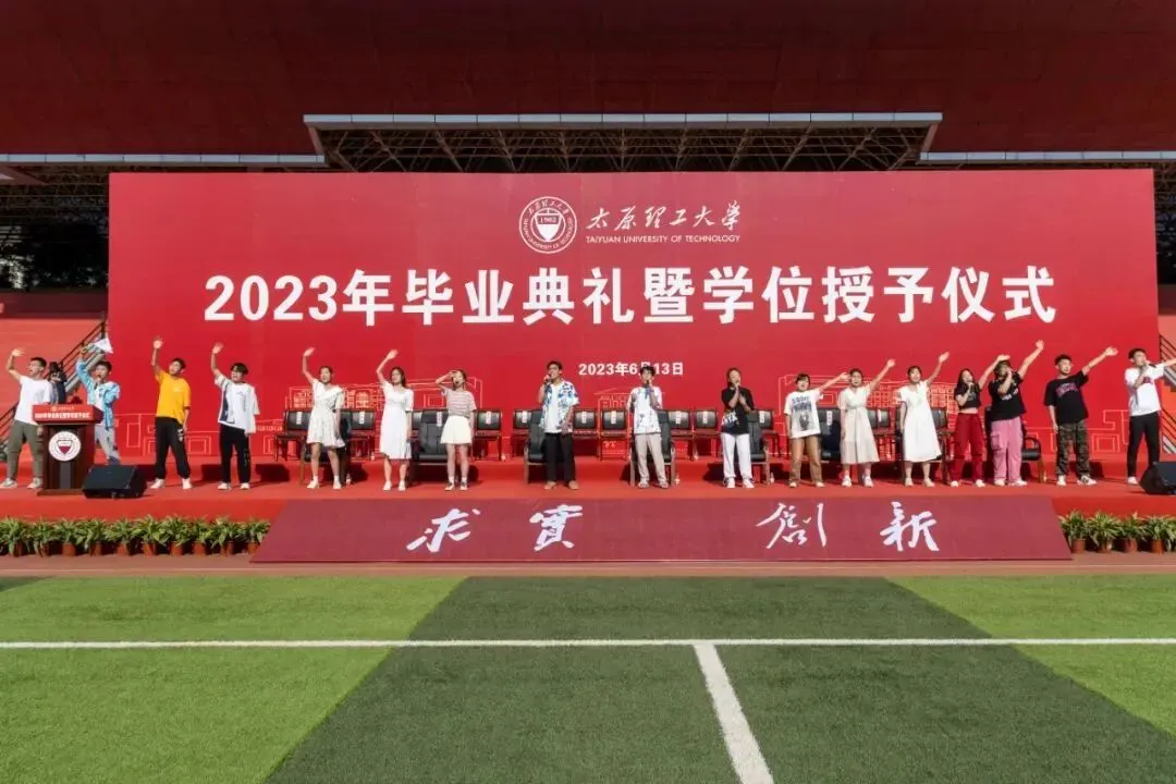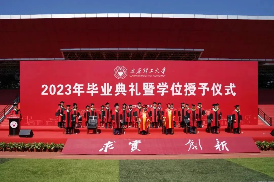 6月13日上午,太原理工大学2023年毕业典礼暨学位授予仪式在明向校区东田径场举行。校党委书记郑强,校党委副书记、副校长(主持行政工作)孙宏斌,中国工程院院士金智新,中国科学院院士赵阳升,校党委副书记刘润祥,校党委常委、副校长吴斗庆、张献明、肖连团出席毕业典礼,各学院分学位委员会主席、各学院党委书记、各职能部门(单位)负责人、学校服务单位代表,3000余名2023届毕业生代表和部分教师代表等参加毕业典礼。刘润祥、肖连团分别主持毕业典礼和学位授予仪式。