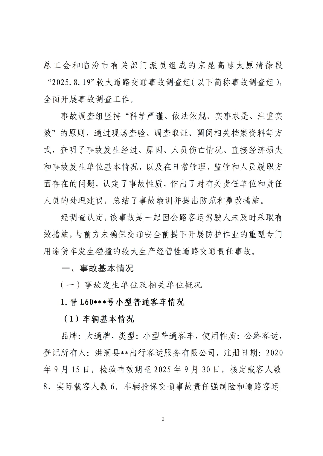 >京昆高速太原清徐段“8·19”较大道路交通事故调查报告