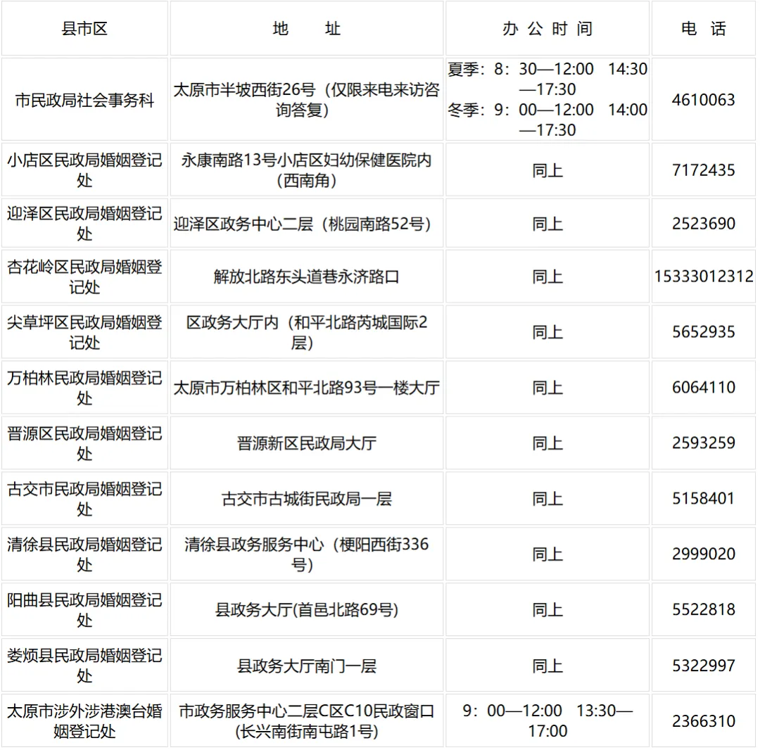 更多关于太原婚姻登记信息