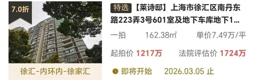 • 拍卖时间:上海市闵行区人民法院将于2026年3月27日10时至2026年3月30日10时止