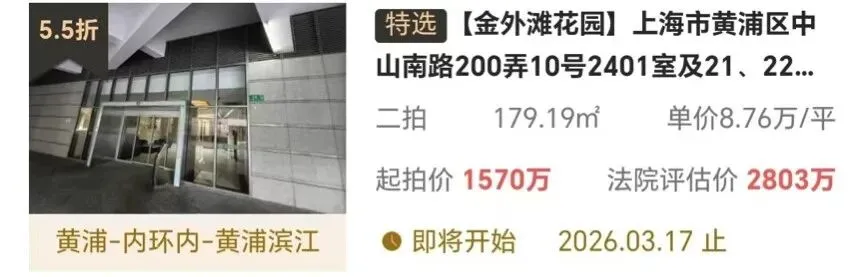 • 法院起拍价:2318.4万,扣除车位价格50万,目前起拍单价11.04万