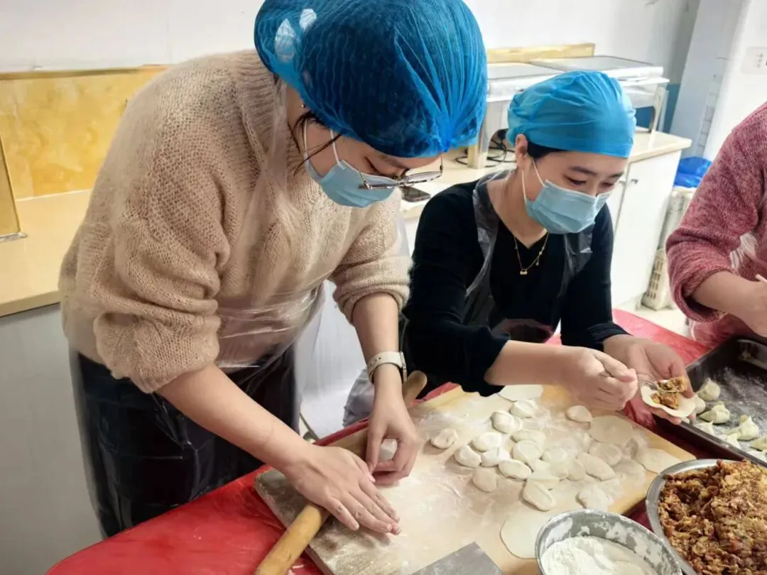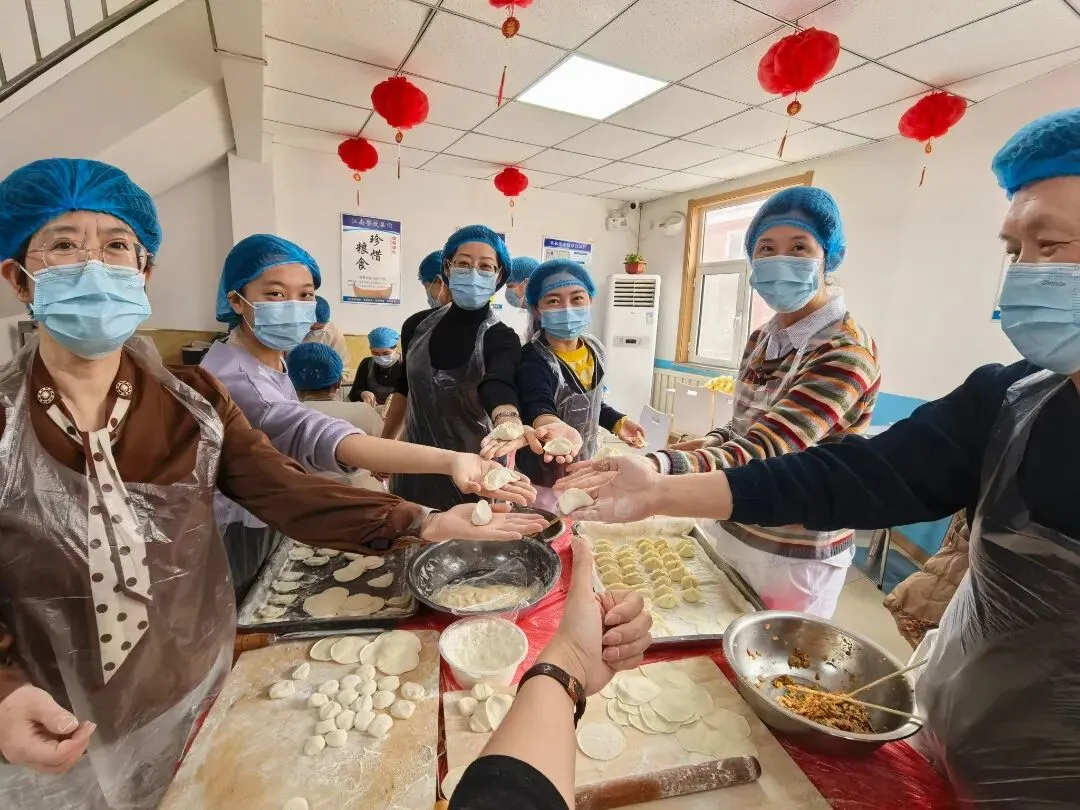 平日里,大家身着白大褂,坚守在诊疗一线,严谨细致地守护群众健康;此刻,大家褪去工装,欢聚一堂,在揉面、擀皮、包馅的过程中,放松了身心,增进了交流。经验丰富的职工耐心指导年轻同事包饺子技巧,年轻同志主动帮忙打下手,党员同志主动承担起最繁琐的工序,不分彼此、互帮互助,现场处处流淌着团结友爱的温情,欢声笑语驱散了冬日的寒冷。