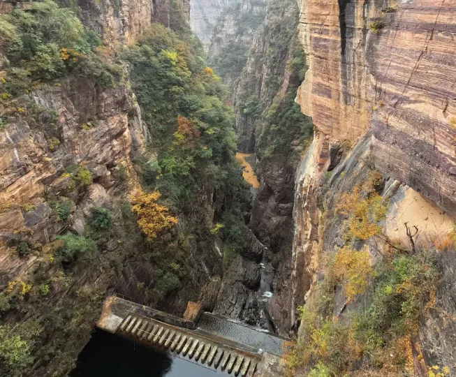 拍照别总盯着大广角。试着拍拍挂壁公路的光影,上午十点左右,阳光像利剑一样穿过洞口,那光柱,不用修图就有电影感。季节上,盛夏来避暑是首选,但其实秋天的陵川更有味道,满山的红叶,配上黄色的石头墙,颜色浓郁得像油画。