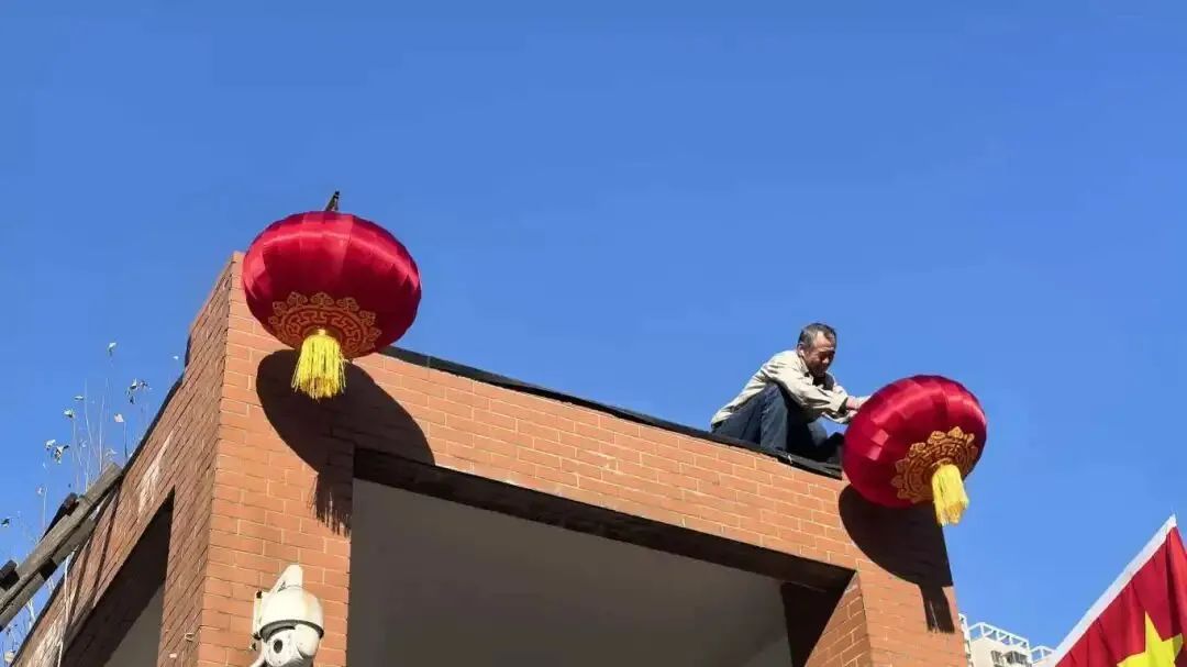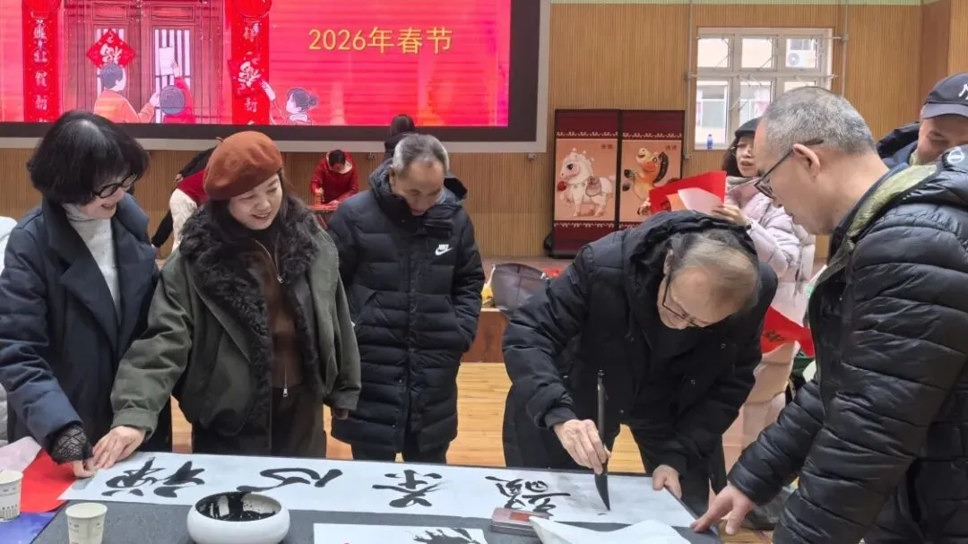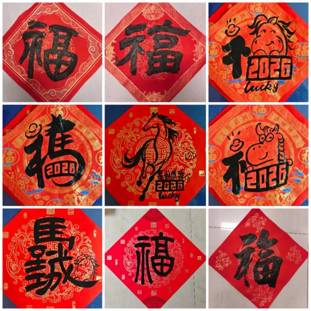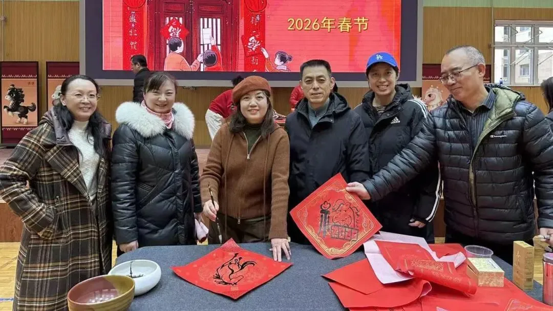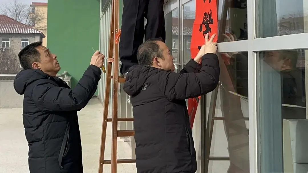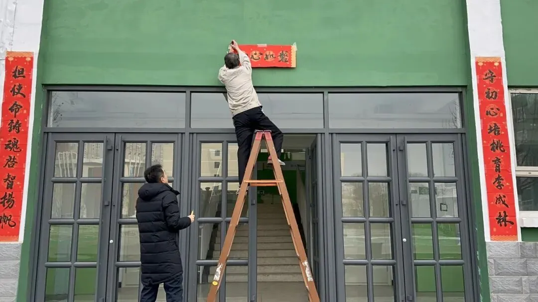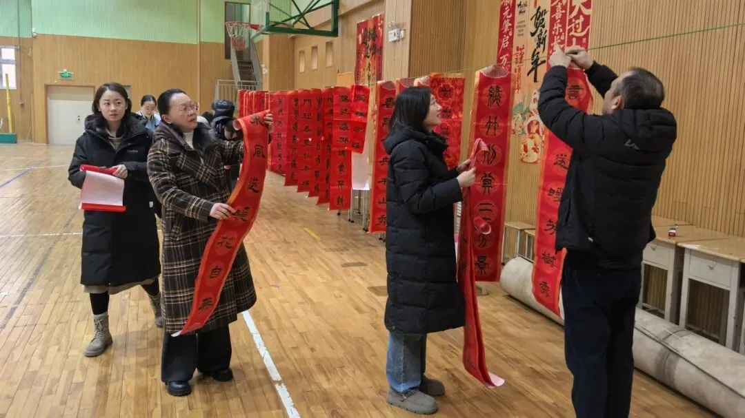 一副副春联、一张张剪纸送到教职工手中,大家笑意盈盈、倍感温暖。学校总务处在校门口高挂红灯笼,鲜艳的国旗迎风飘扬。处处洋溢着辞旧迎新的浓厚氛围与蓬勃生机。