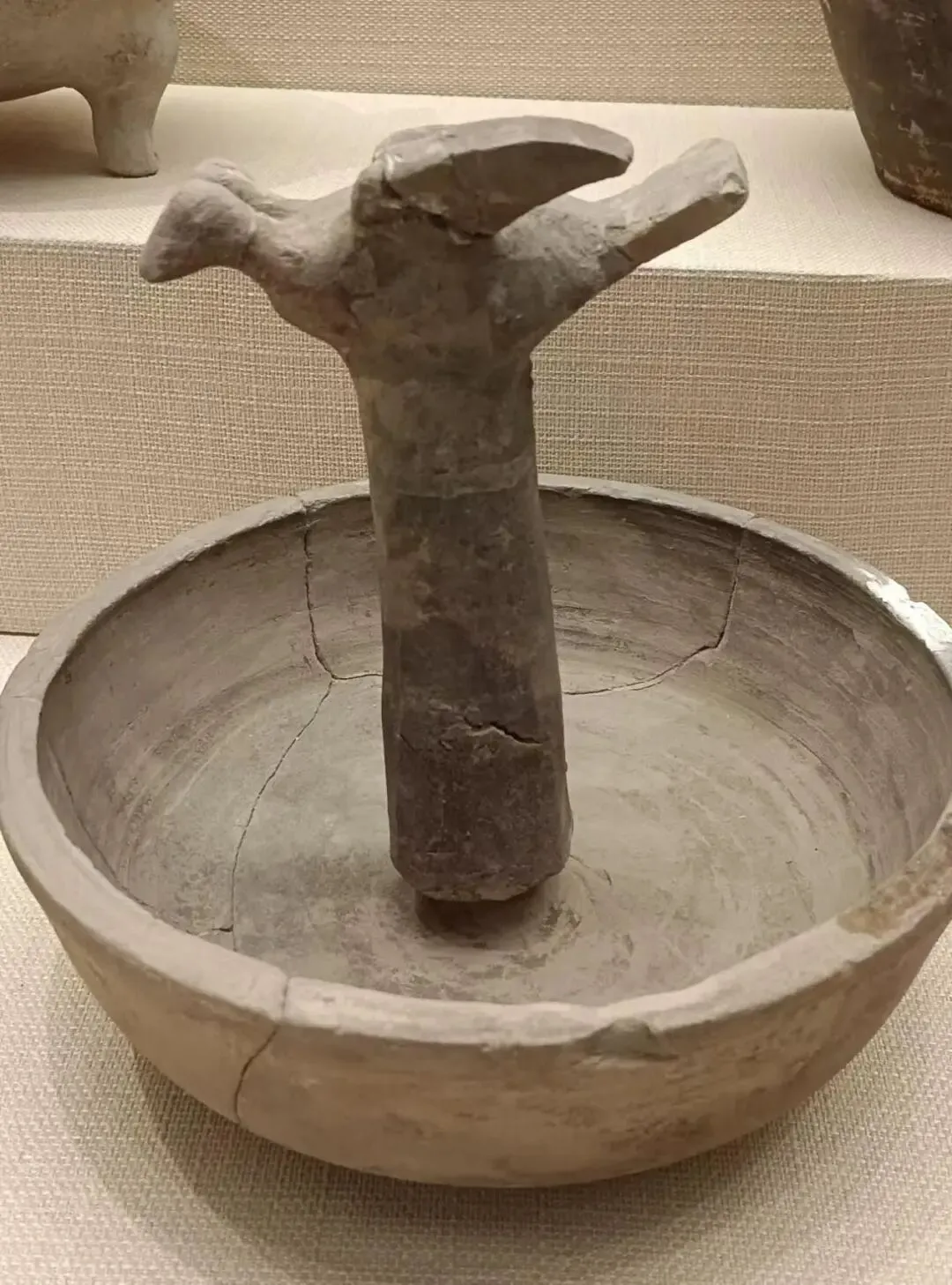 在其他博物馆也有类似文物,有介绍说是这是灯盘,鸟与太阳崇拜有关。
