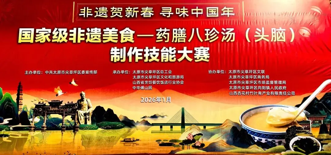腊月初八,岁寒粥暖。1月26日,太原市尖草坪区中华傅山园张灯结彩,以“非遗贺新春·寻味中国年”为主题的头脑(又名“八珍汤”)交流品鉴活动温情启幕。这是自2007年开园以来,傅山园连续第十八载在腊八佳节施粥送福,一碗融合药膳精髓的热粥,不仅暖了寒冬里的味蕾,更串联起非遗传承与新春期盼的文化脉络。
