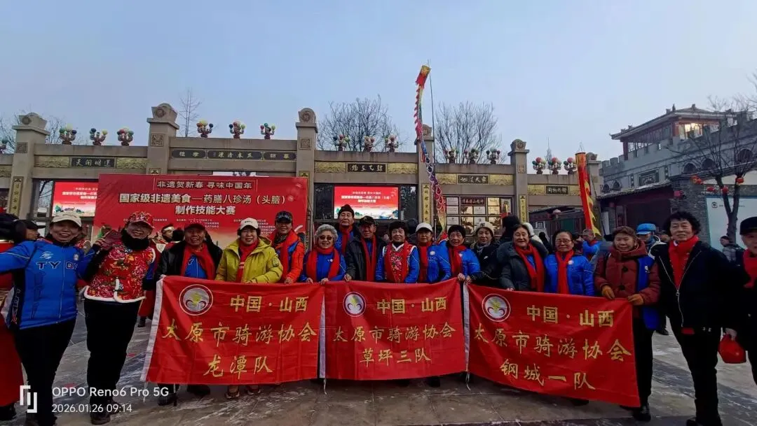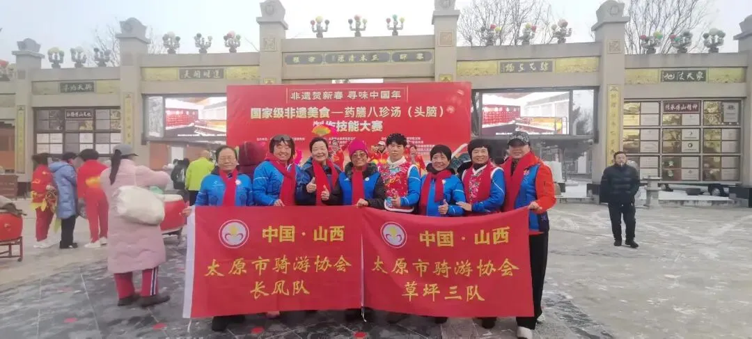 值得一提的是,太原骑协已连续八年参与活动。当日清晨,百名骑友身着统一骑行服、佩戴红围巾齐聚傅山园,有的赶喝第一锅药膳粥,有的加入扭秧歌、耍舞龙的队伍,成为现场一道亮眼的风景线。环三晋自行车联赛、捷安特和平北路店、劲酒骑士等团体共同助力,骑协会长茹太平更是在春联书写区挥毫,以多样字体书写新春祝福,与市民共享文化乐趣,用活力与热情为非遗传承注入新活力。