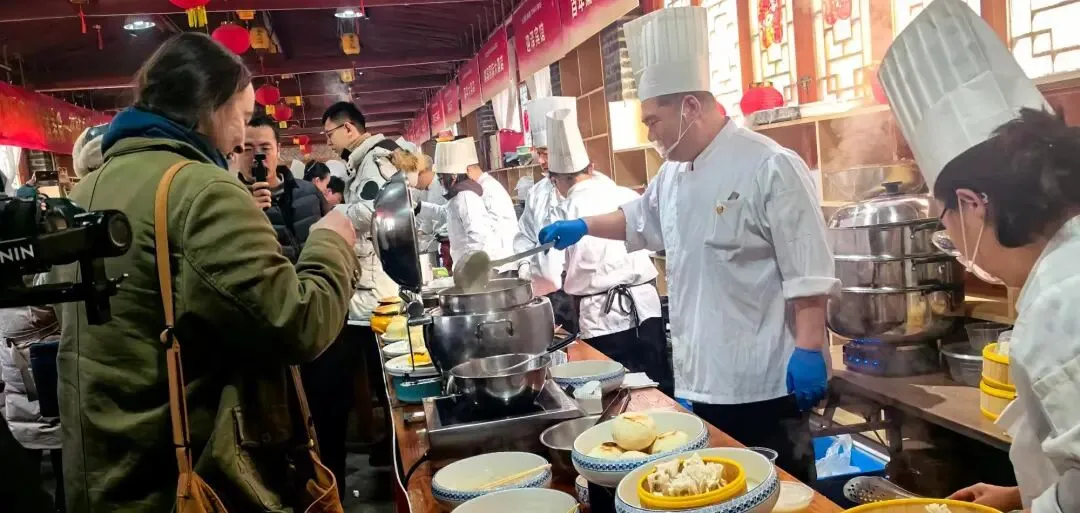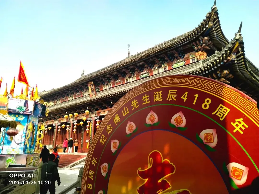 子夜零点,中华傅山园内已是灯火通明。一口可供千人食用的巨型铁锅架起柴火,泉水沸腾间,糯米、红枣、莲子等食材与枸杞、玉竹、黄芪、百合等中药材一同入锅,经六小时慢火熬煮,成就了这碗兼具益气养血、滋阴益阳功效的药膳腊八粥。清晨六点,天微亮,环卫工人、附近村民与慕名而来的游客便排起长队,免费领取这份冬日暖意,同时畅享园区免门票游览的福利,在氤氲粥香中感受傅山文化的浸润。