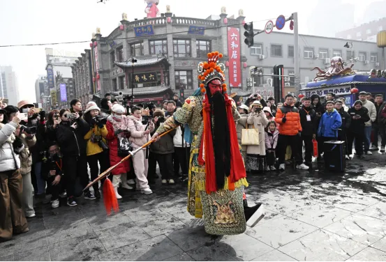 当巡游队伍抵达钟楼街核心区时,传统关公形象与现代商业街景相互映衬,一个将小年习俗、晋剧艺术与关公文化创新性融合的新春文旅场景,便立刻呈现在市民眼前。