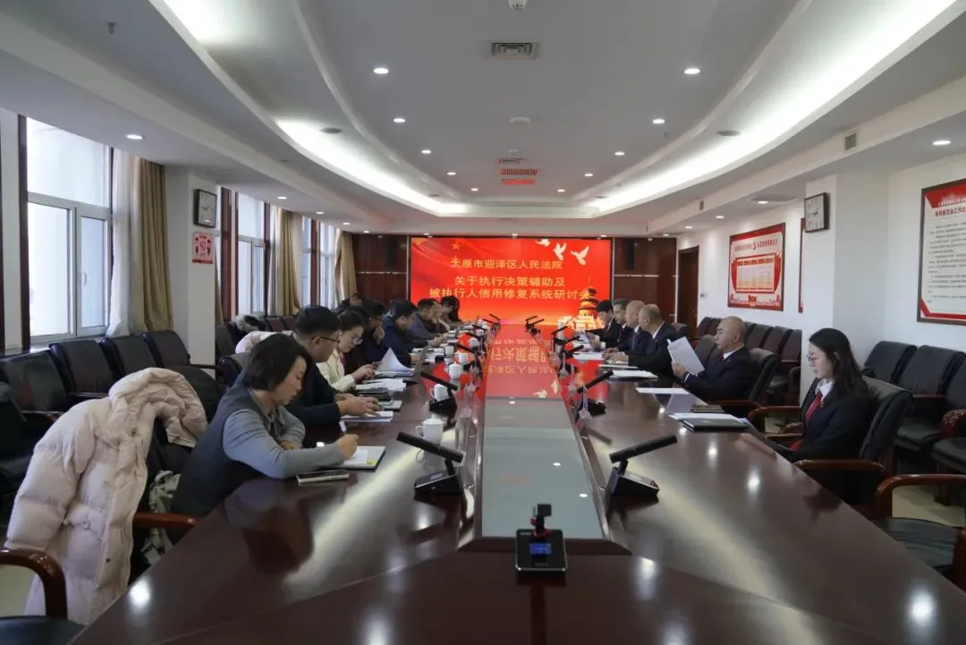 2026年1月20日上午,太原市迎泽区人民法院组织召开“执行决策辅助及被执行人信用修复系统研究——基于太原市迎泽区人民法院的司法实践”课题开题研讨会。本次研讨会标志着该课题正式启动,进入实质性研究阶段。迎泽区人民法院副院长白立峰主持会议,副院长梁建波、执行局局长范勇、金融庭庭长赵丽霞及相关法官出席会议。中国人民大学法学院副教授李广德教授团队、杭州汉资科技有限公司董事长方明一行、钱塘征信有限公司法务代表张海云作为课题合作方代表参会。