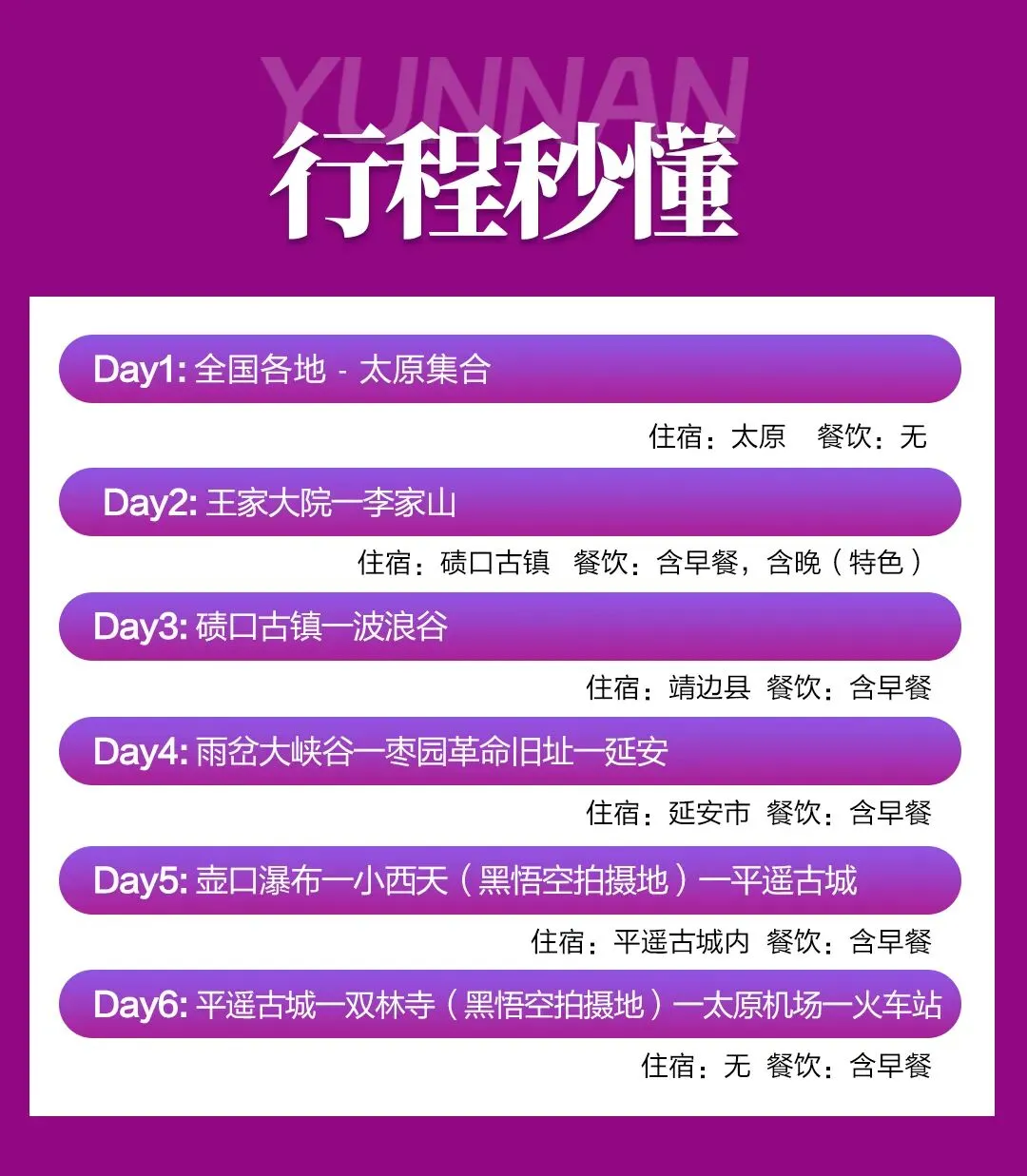 3)山西-陕西-山西环线穿越,部份路段有可能碰到修路或天雨封路绕行,我们有权根据实时路况进行调整线路。