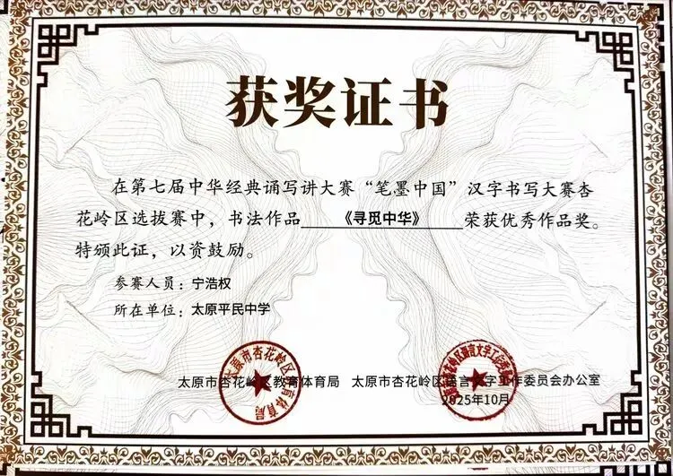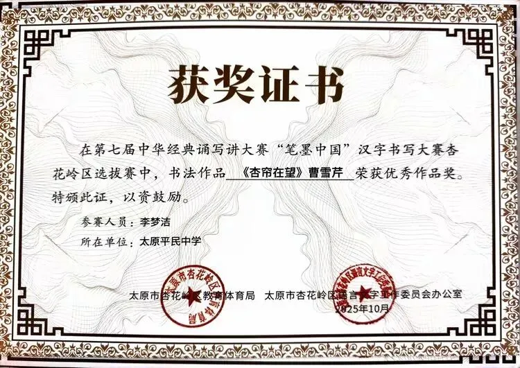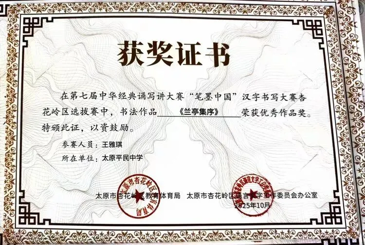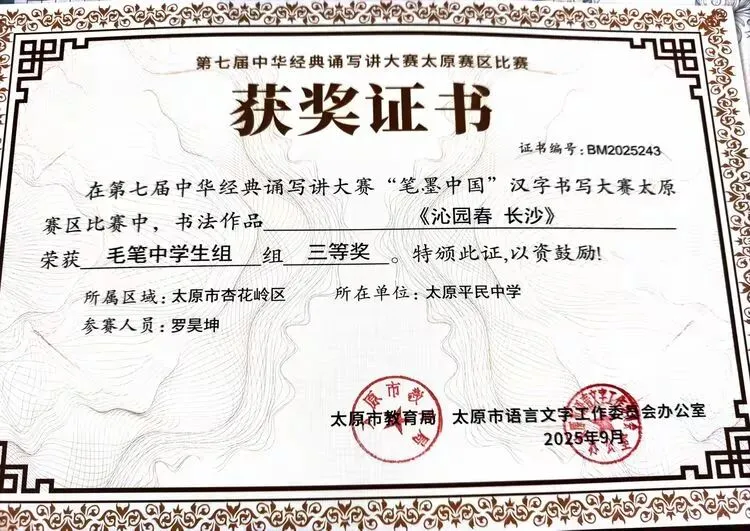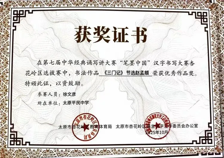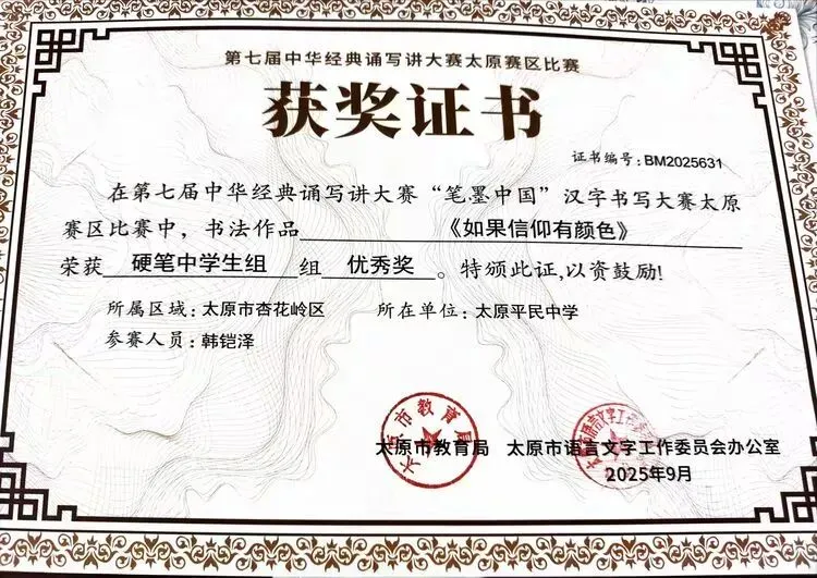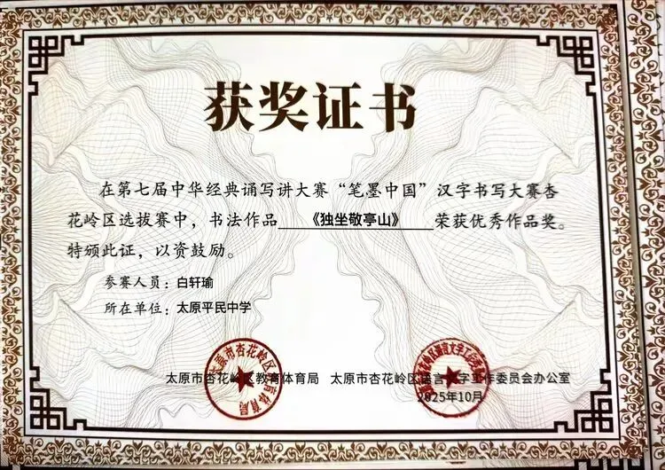 此次获奖不仅是对我校学子综合素养的肯定,更是对学校“敦品砺学,精益求益”校风校训的印证。未来,我校将以此次赛事为契机,持续深化汉字书写教育,丰富文化育人载体,引导学子在横竖撇捺间感悟汉字之美、在抑扬顿挫中领会汉语之美,让传统文化在校园中焕发持久生命力。