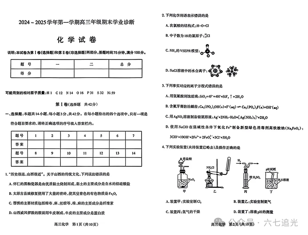 【太原高三期末】山西省太原24-26学年高三上学期期末试题答案已更新!【全科】试卷及答案解析(直接下载))