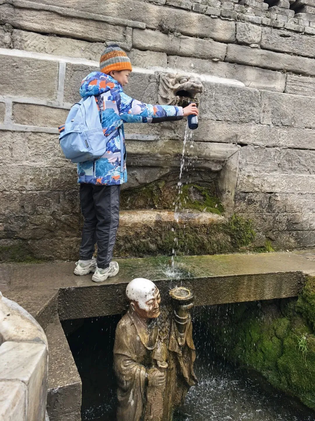 小飞凑热闹排队,旁人只拍照留念,他却认真接了一瓶难老泉,递到我手上:“爸爸,拿回去泡茶。”