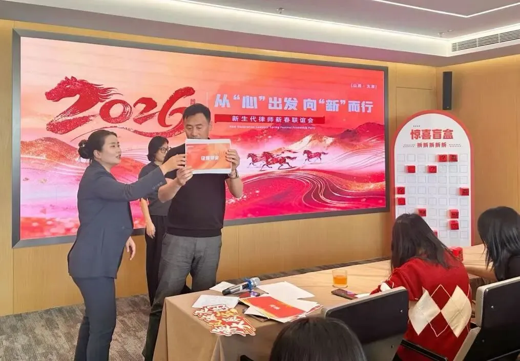 2026 年 2 月 10 日下午,大成太原金融部以 “从‘心’出发 向‘新’而行” 为主题在律所举办新生代律师年会。律所同仁欢聚一堂,共贺新春、共话金融法律服务行业发展,在温馨欢乐的氛围中凝聚团队力量,携手奔赴新征程。