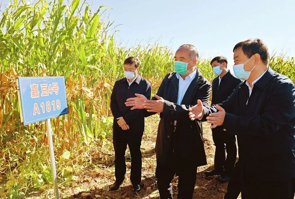 今年我省把大豆玉米带状复合种植作为农业生产主推技术,共推广了80多万亩,覆盖全省近一半县(市、区)。秋粮收获在即,带状复合种植模式收成如何,林武十分关心。他来到小店区西温庄乡南王名村的大豆玉米带状复合种植基地,详细了解往年收成和今年情况,同基地负责人一笔一笔算成本账、收益账。当听到不包括政府补贴,亩均比原来净增加三四百元收益时,林武十分高兴,连连说道“这充分说明大豆玉米带状复合种植是大有前途的”。秋日暖阳下,一体收割机在农田里往来穿梭,收割、脱粒、装袋等流程一次性完成。林武饶有兴致地观看农机作业,他指出,大豆玉米带状复合种植是实现农业增效、农民增收的创新手段。各地各有关部门要加强全周期服务,做好政策引导和培训指导,保障农业生产用水用能,加强适用型农机农具改进研发,发展适度规模经营,确保把这项示范推广工程做好做扎实,让农民种粮能获利、多得利。当前要做好不同大豆品种、不同套种模式、不同栽培方式下的测产评估工作,为指导好明年生产工作夯实基础。