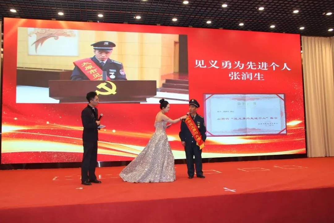 联欢会特别邀请到荣登中央政法委见义勇为勇士榜的万柏林分公司保安员张润生,他在危急时刻不畏强暴、挺身而出、勇擒歹徒的英勇事迹在三晋大地广为流传,他是集团员工的骄傲,他是我们学习的榜样,参会人员以最热烈掌声向英雄致敬,将现场氛围推向高潮。集团党委副书记、董事、总经理郝猛进为其送上鲜花及慰问金5000元,向其致以崇高的敬意和诚挚的问候。