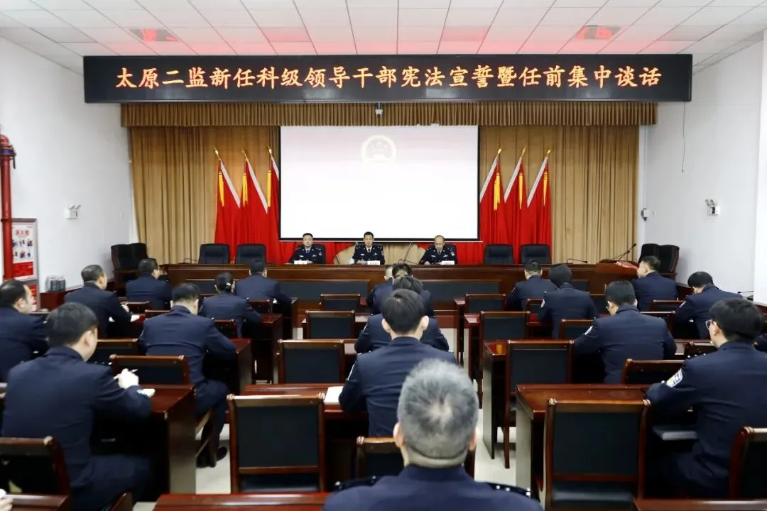 2月10日,太原二监召开新任职科级领导干部宪法宣誓暨任前集中谈话会,为新提任科级干部明方向、提要求、鼓干劲。