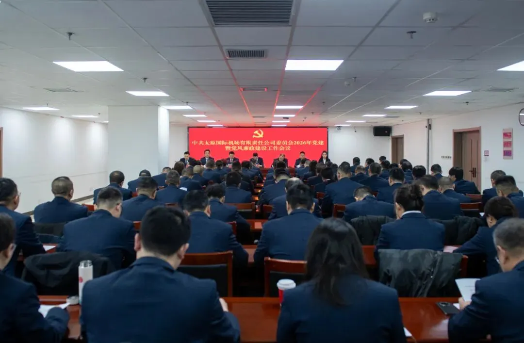 2月11日,太原机场公司党委召开2026年党建暨党风廉政建设工作会议,会议全面总结2025年党建和党风廉政建设工作,分析当前形势任务,系统部署2026年重点任务,进一步统一思想、凝聚共识,以高质量党建引领保障公司高质量发展。太原机场公司党委委员,二级副职(含)以上干部,各党支部书记,各党总支、党支部纪检委员参加会议。