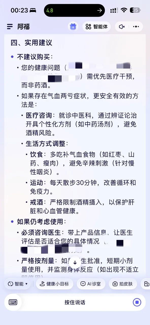 阿福真的是十分推荐给父母装的一个AI。父母需要的就是健康,阿福合作的是各地医保局、卫健委,能直连全国大医院和专家,官方靠谱。真生病了让阿福协助挂个号、在线问个诊,也很方便。