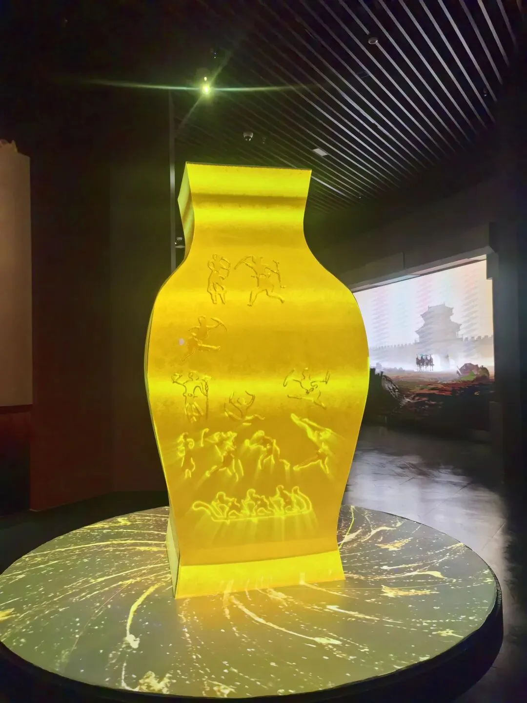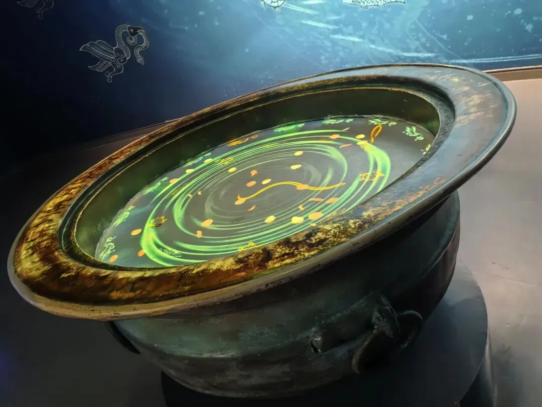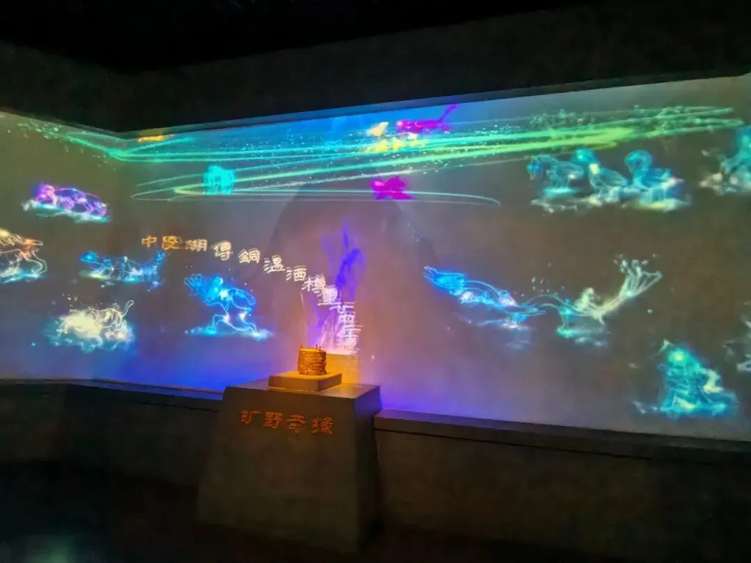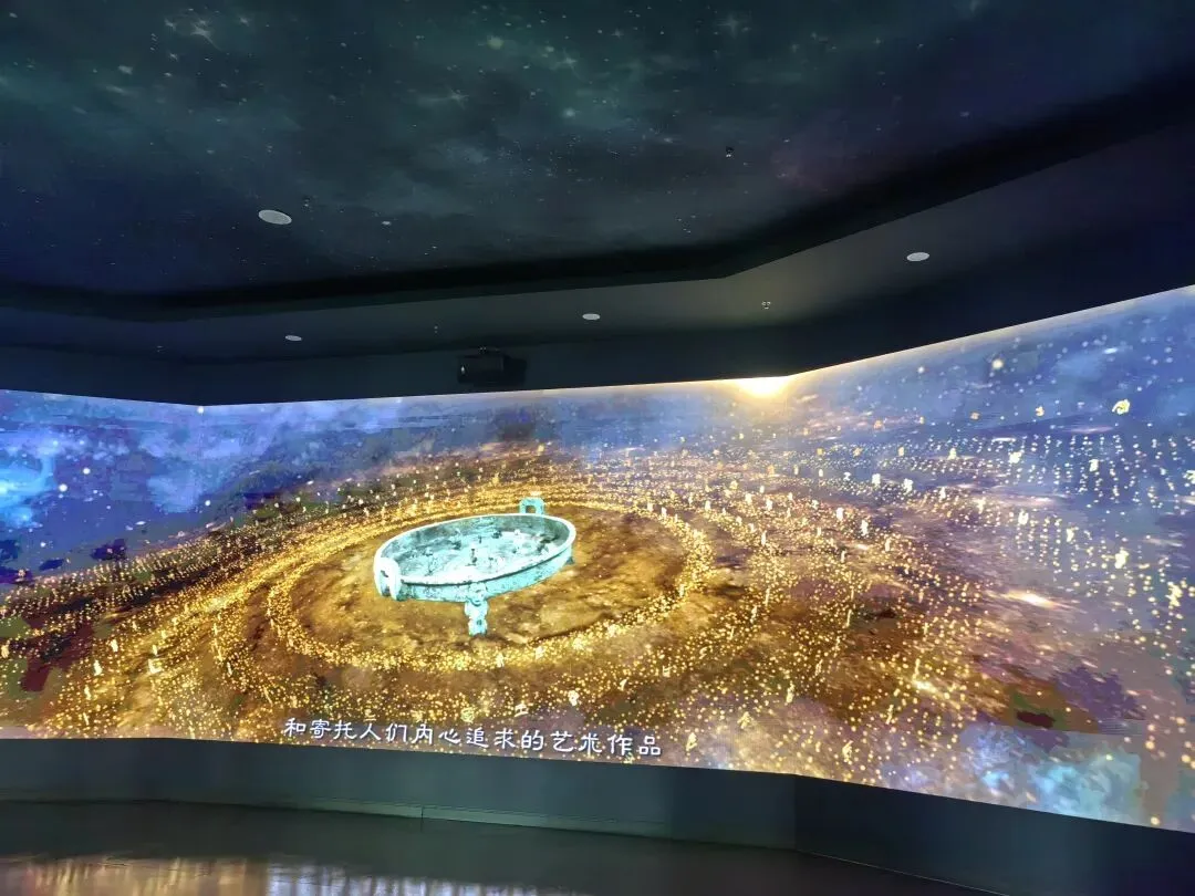 首先参观了数字青铜展厅,从没想过现代科技智能与古老青铜的结合是如此的璀璨震撼。一件件青铜镇馆之宝仿若穿越历史星空呈现在游客面前,让我们在历史的星空里遨游。