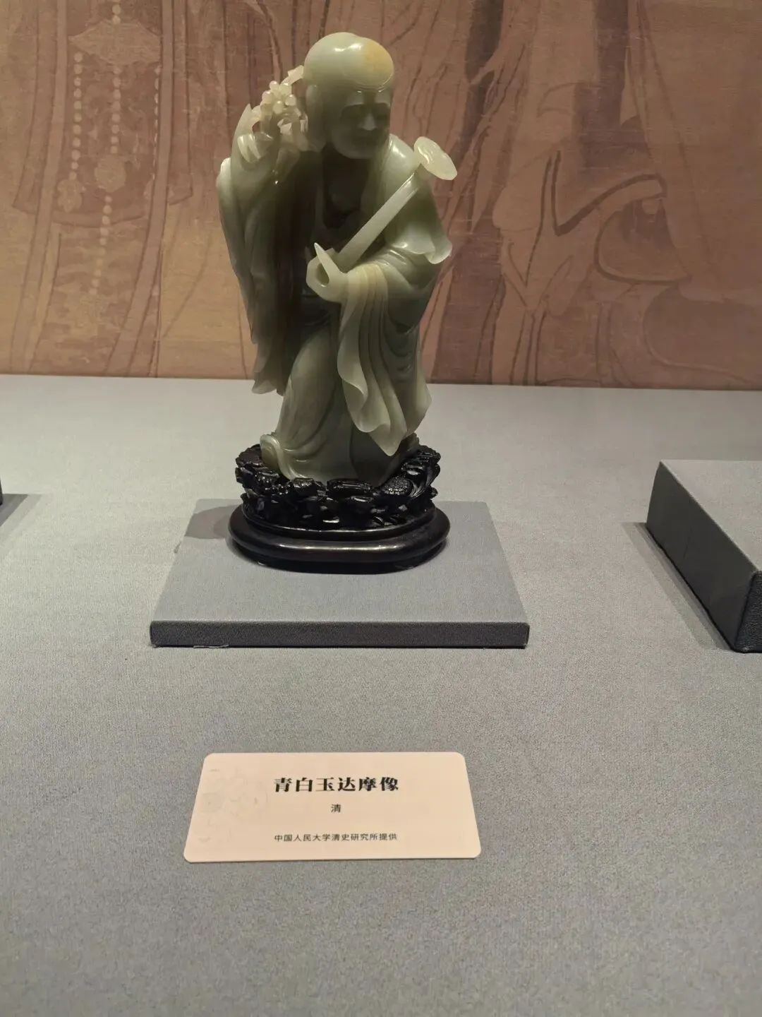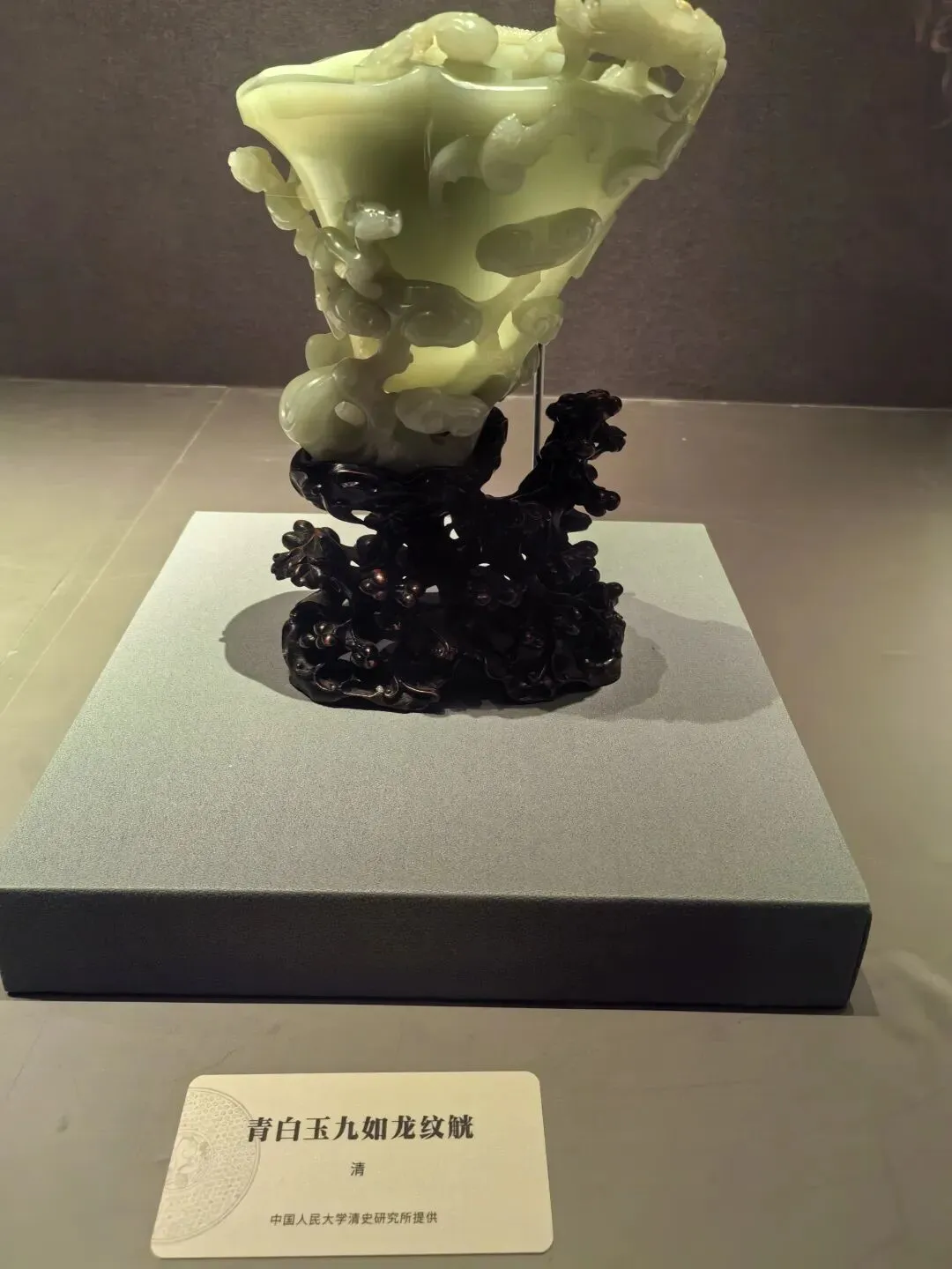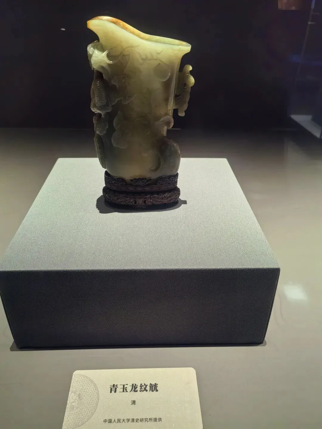 玉戚是一种古代礼仪用玉,作为礼器或仪仗器,象征权力、身份与威仪,用于祭祀、朝聘或丧葬等重要场合,不具备实战功能。玉戚(包括青玉戚)最早出现于新石器时代晚期,在夏、商、西周时期达到鼎盛,之后逐渐衰落。玉戚一般呈扁平长方梯形或斧形,两侧常琢有对称齿棱(扉牙),中部有穿孔,刃部多为弧形或平刃。下面的是一件清代的玉戚。我竟然没拍到文物。
