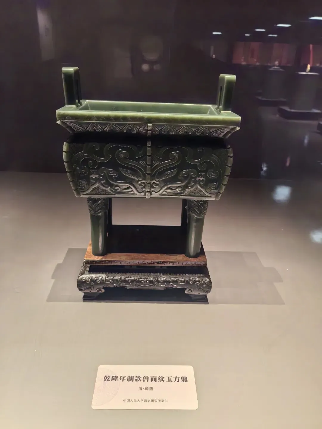 他曾驳回镂空“玲珑鼎”方案,要求“返朴归真”,确立了青玉方鼎仿青铜形制、重温润质感的风格,方腹、立耳、四柱足,饰饕餮纹与云雷纹地,底刻“大清乾隆仿古” 。