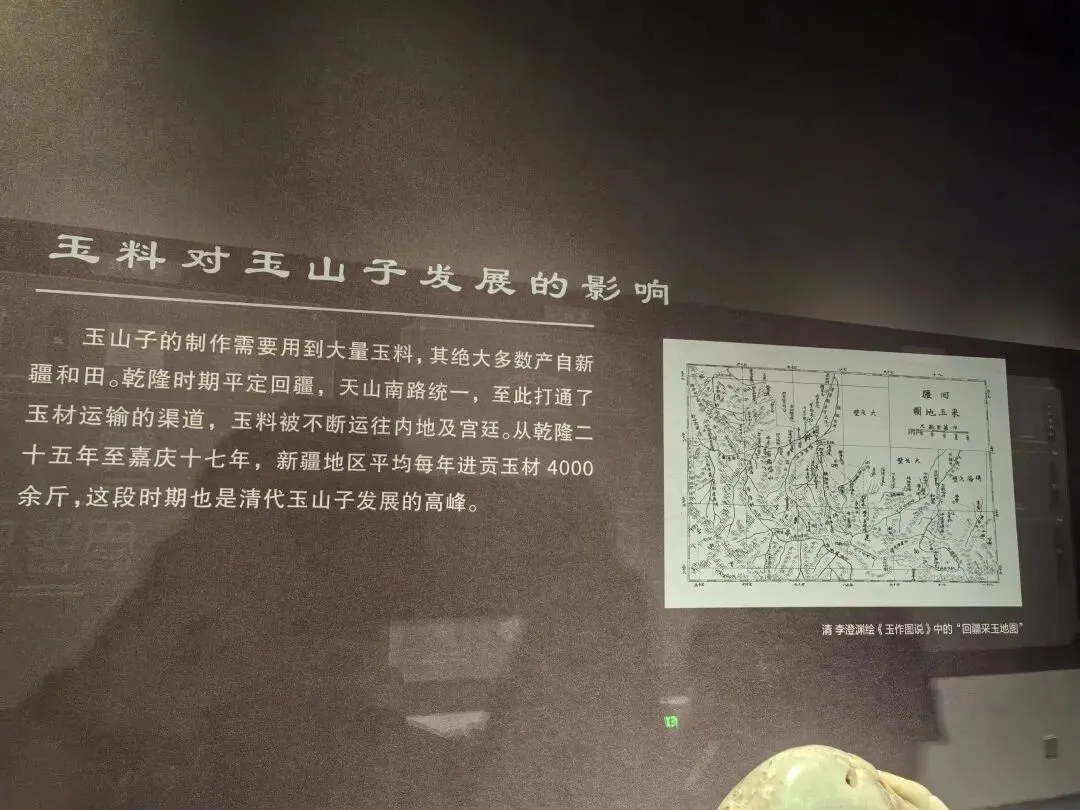 玉山子(又称玉雕山子、玉山水),是以整块玉石为料,融合圆雕、浮雕、透雕、线刻等技法,雕琢成山峦、流水、人物、亭台、草木的立体山水景观陈设器;多依玉料天然形态、色泽“巧作”,常刻御制诗/铭文/印章,是三维的“立体山水画”,非实用器、纯观赏与礼仪器物,起源于两宋时期,清朝乾隆时期发展到鼎峰,制作玉山子的和田玉料因平定回部稳定入贡,扬州成为大型玉山子制作中心。