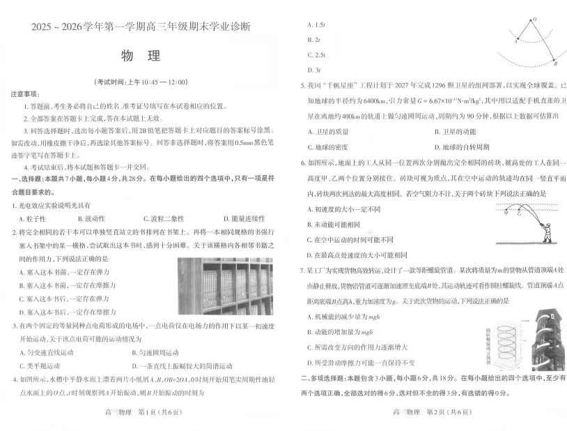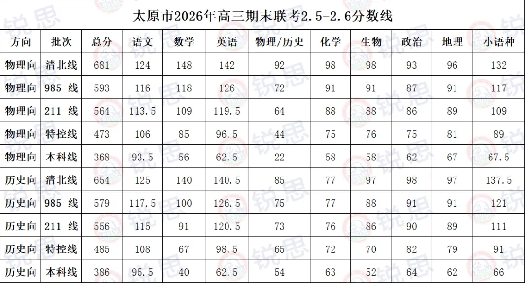 【高三期末全科】太原25-26学年上学期期末试题答案全部更新(含听力)